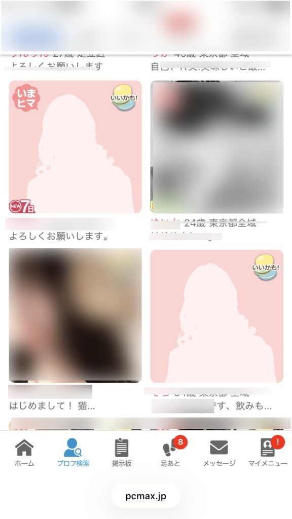 今回はプロフィール検索から探しました、プロフ検索機能の旨味といえば初めたばかりの子やログイン順などに絞ることができるのでアポを取り付けやすいところにあります。